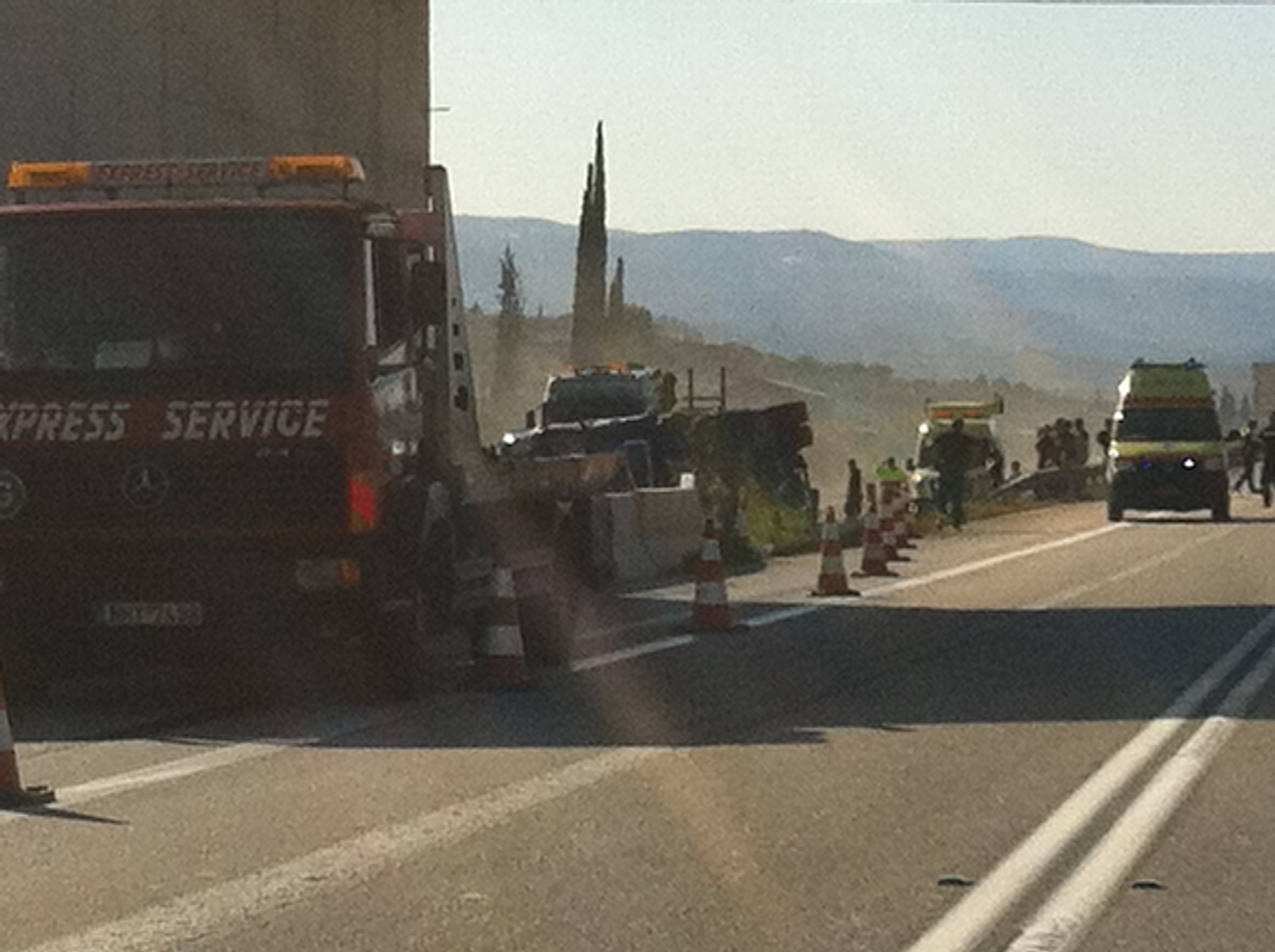 Μία νταλίκα συγκρούστηκε μετωπικά με επιβατηγό ΙΧ, με αποτέλεσμα να αναποδογυρίσει το μεγάλο όχημα, χωρίς ευτυχώς να τραυματιστεί σοβαρά κάποιος. Στο σημείο βρίσκονται άνδρες της Τροχαίας προκειμένου να εξακριβώσουν τα αίτια του δυστυχήματος.